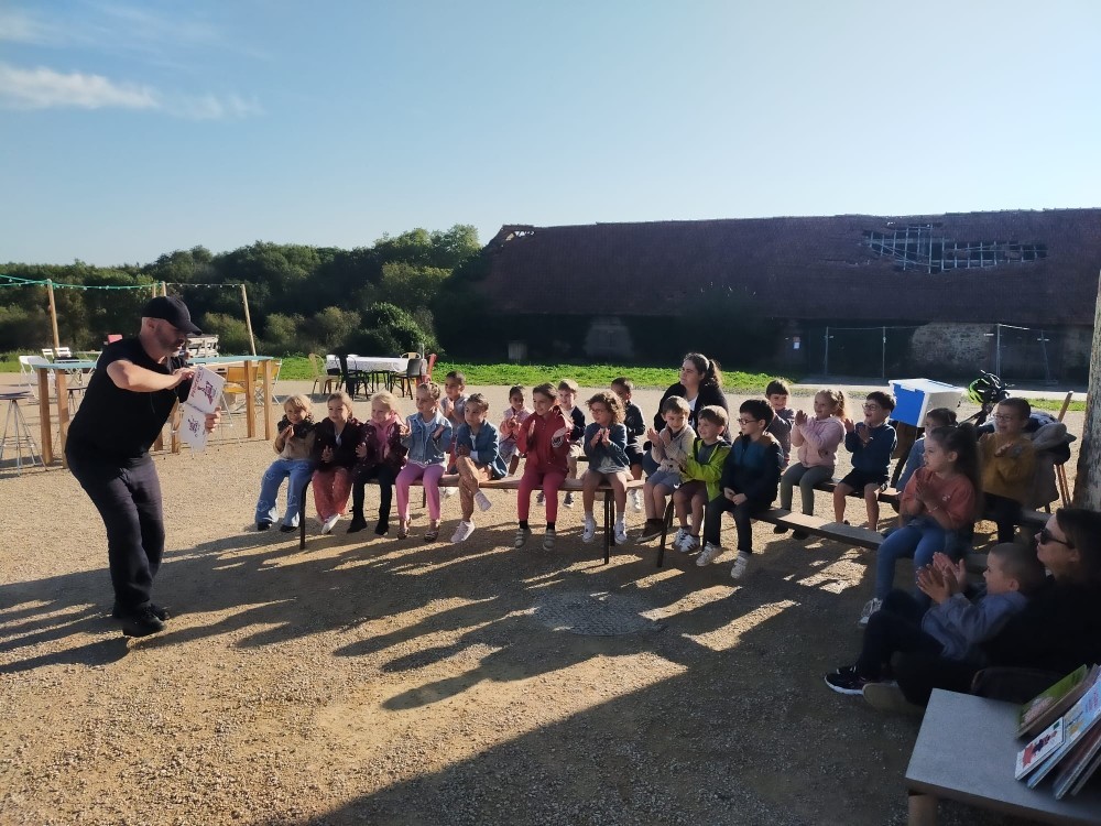 Vendredi 19 septembre, les élèves des classes de Lydie, Alyssa, Ophélie et Matthieu ont vécu un beau moment au château de La Limouzinière ! Au programme : un jeu de piste passionnant dans le parc, une lecture offerte par Matthieu, le bibliothécaire, la découverte de l’exposition “l’école il y a 100 ans” ainsi qu’une exposition sur l’astronomie présentée dans les salles du château. Et pour terminer cette belle journée, un goûter offert par la Municipalité a régalé petits et grands.
