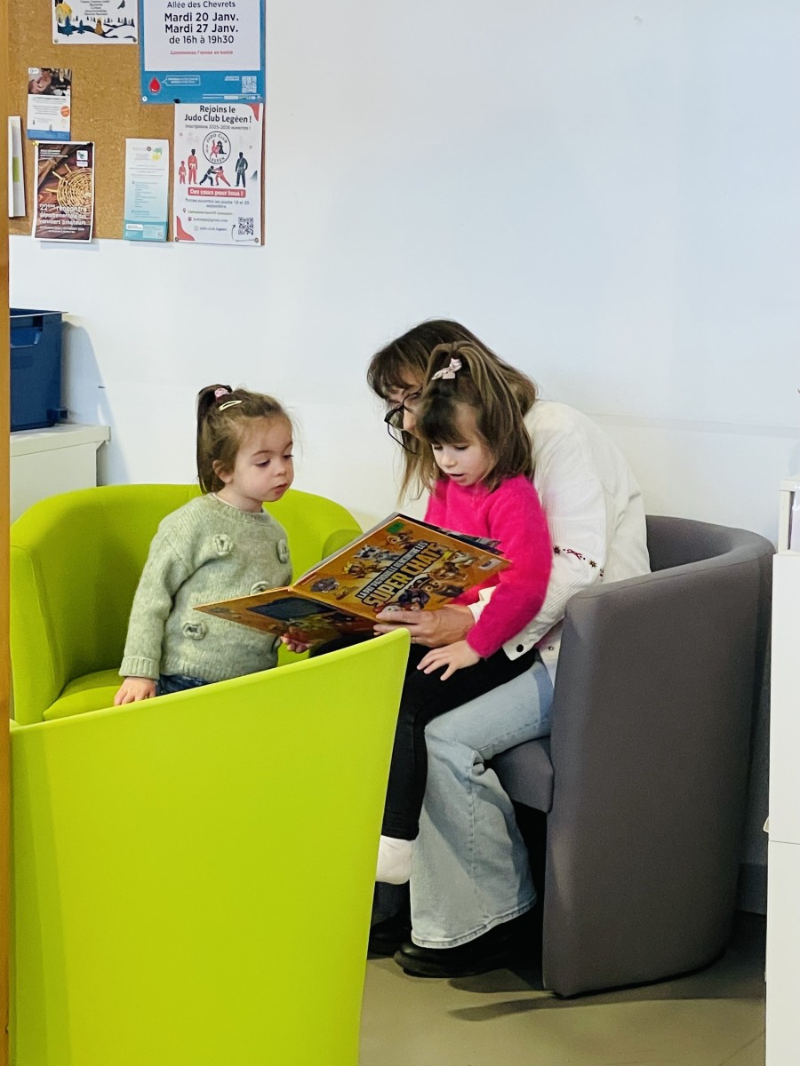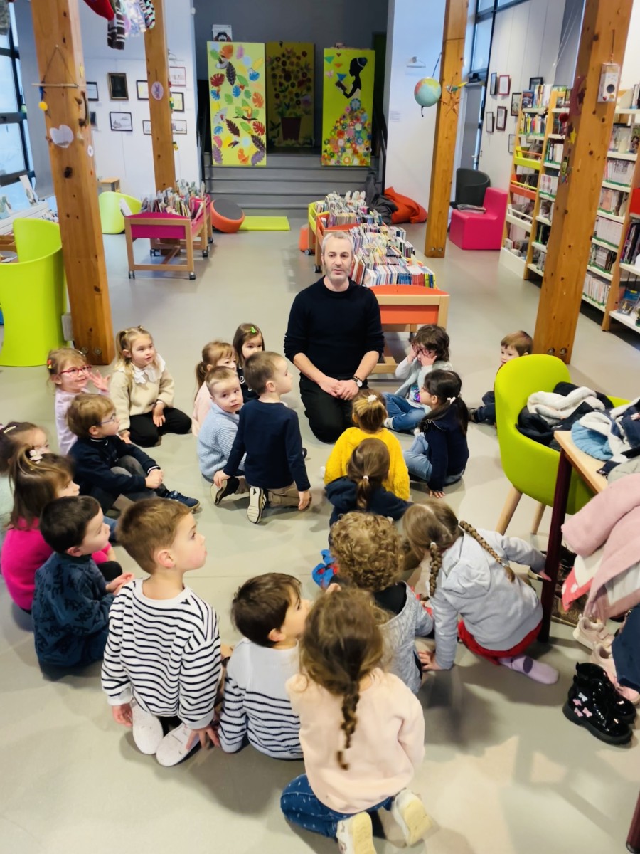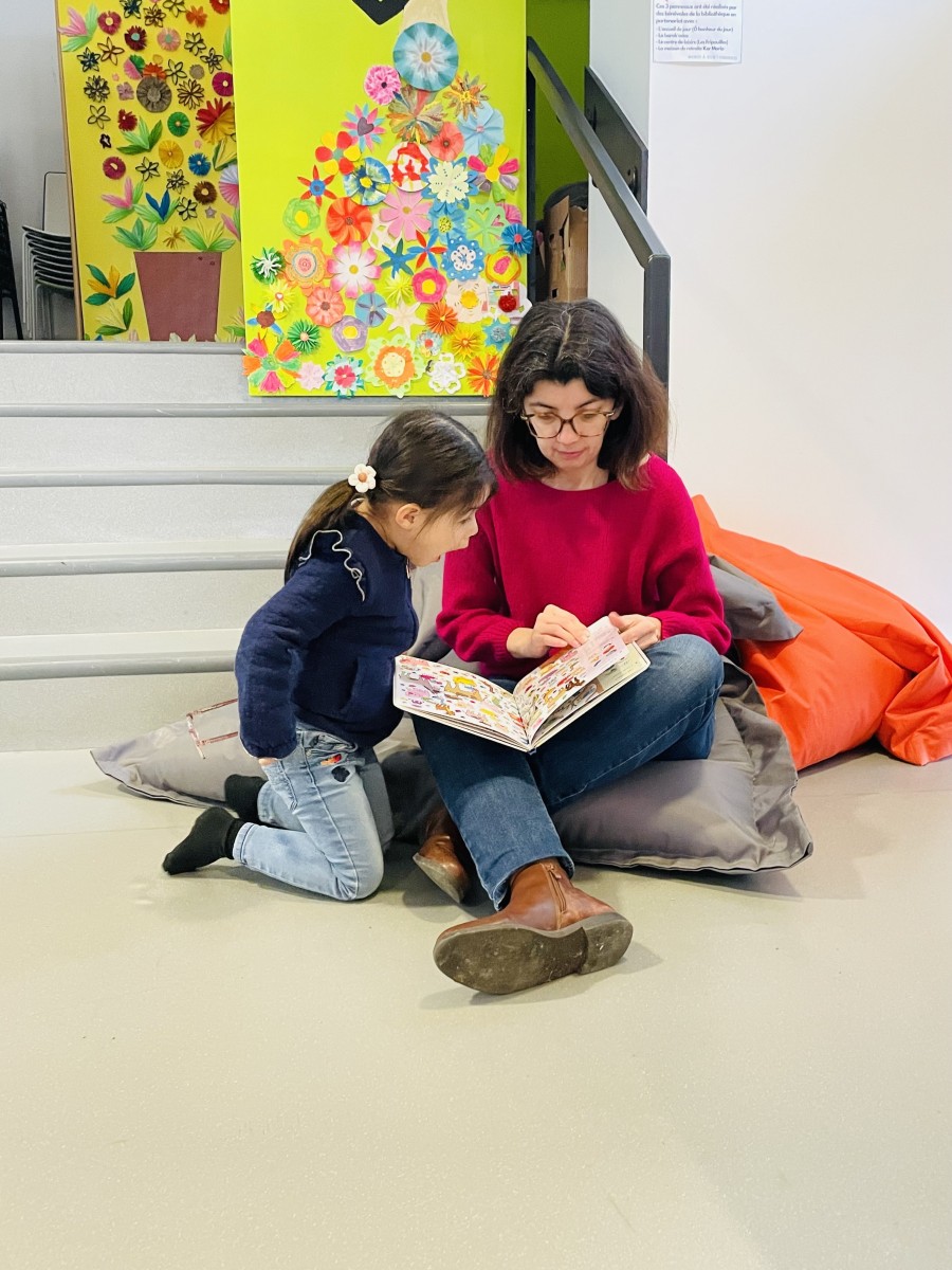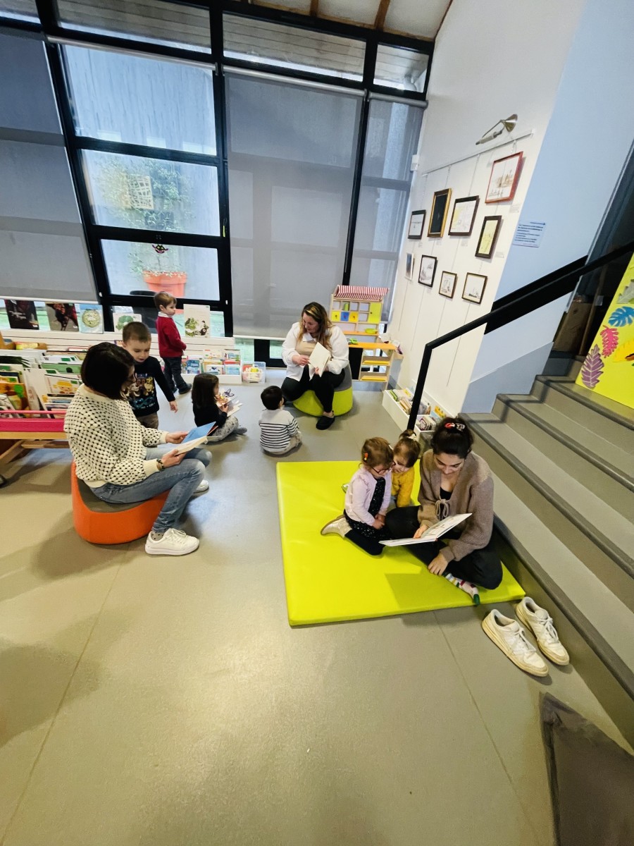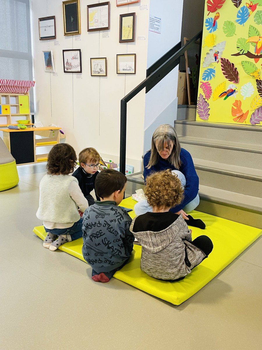 Puis nous sommes allés à la bibliothèque où nous avons retrouvé Mathieu qui nous a lu des histoires de la mer. Nous avons feuilleté des livres avec des mamans qui nous ont lu les histoires.”