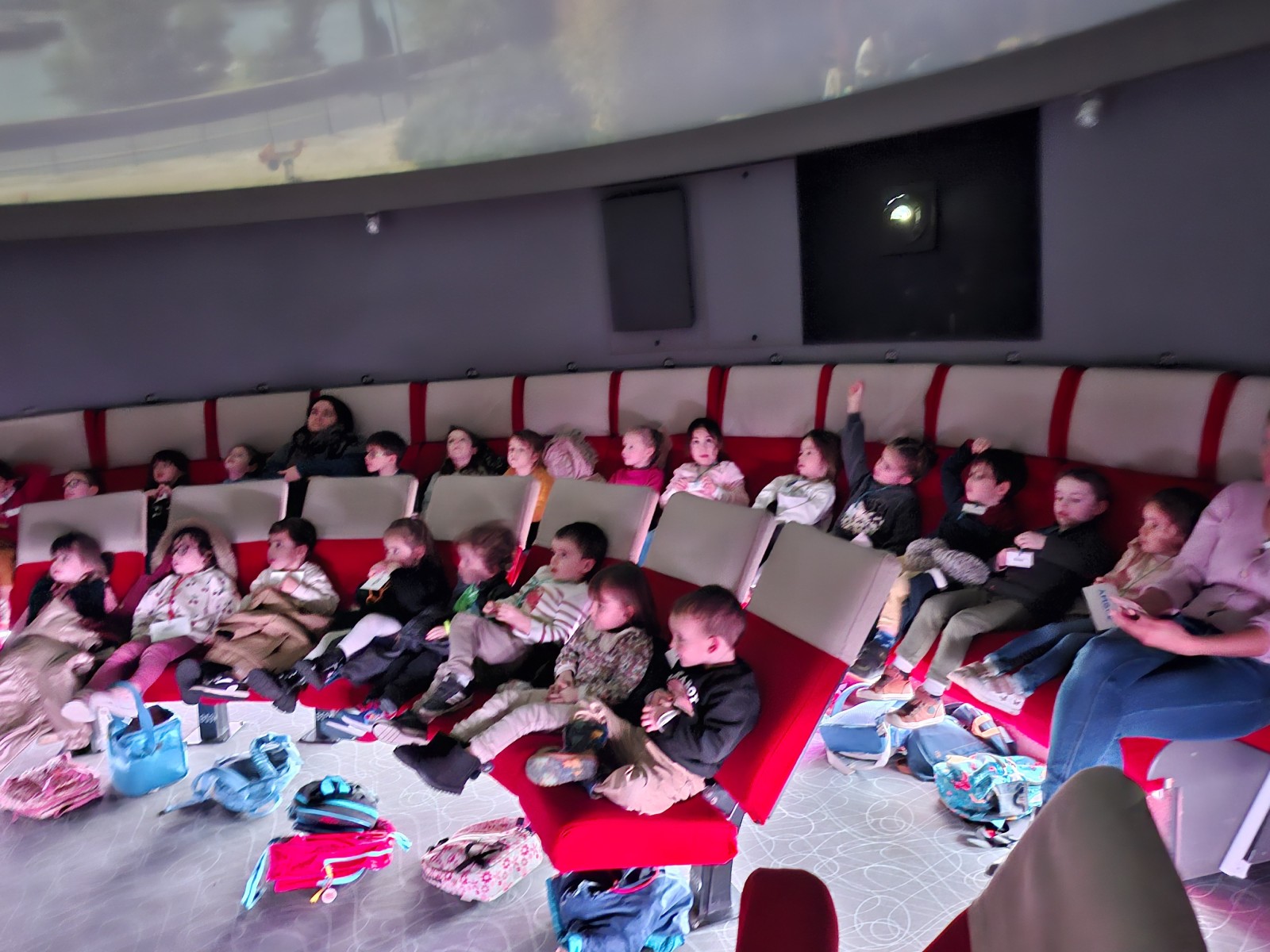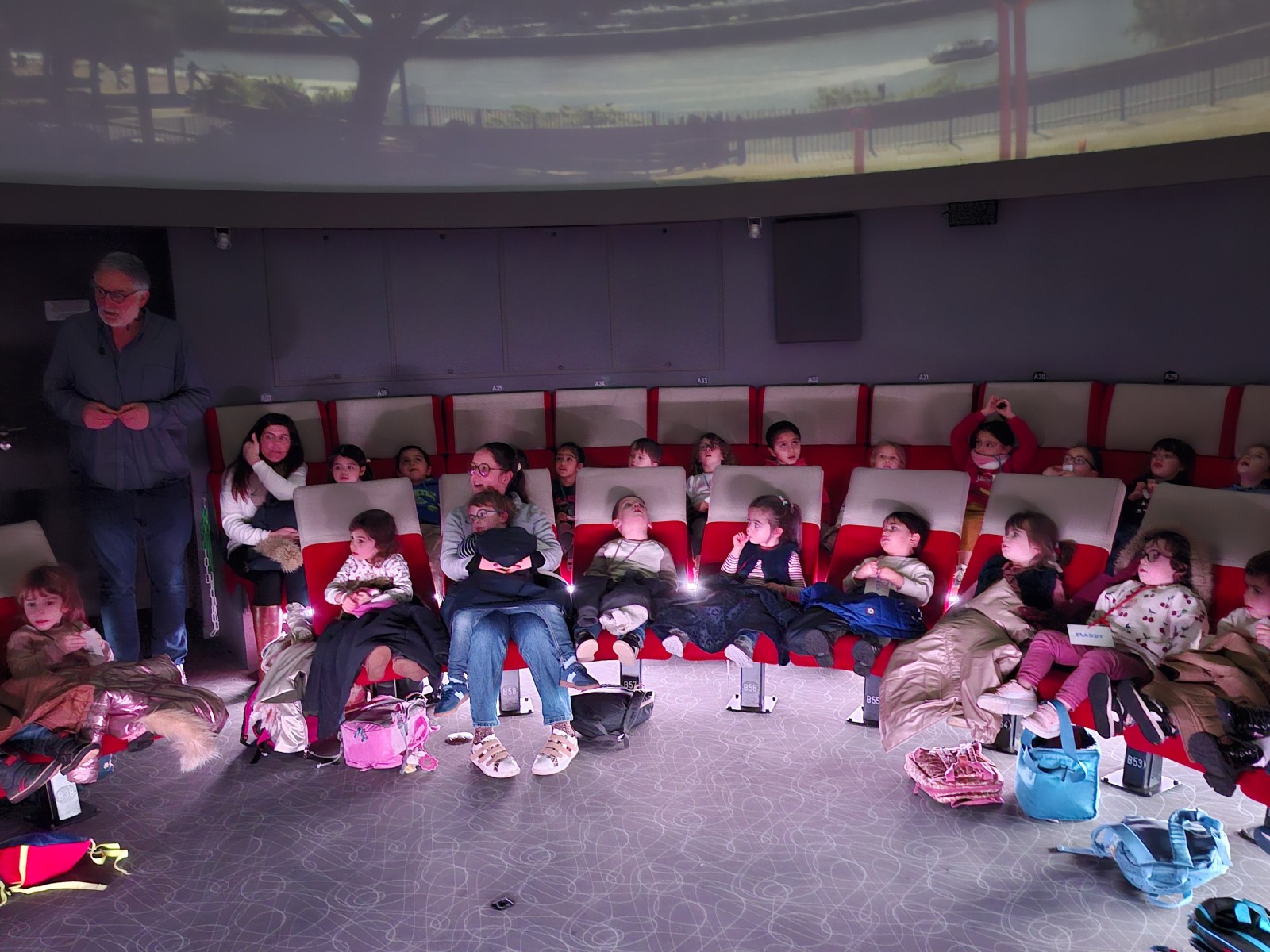 L’après-midi, en lien avec le projet d’école, les enfants ont participé à une séance au Planétarium. Ils ont observé le ciel, appris que la Lune tourne autour de la Terre et que la Terre tourne autour du Soleil. Ils ont également découvert les différentes planètes du système solaire.
