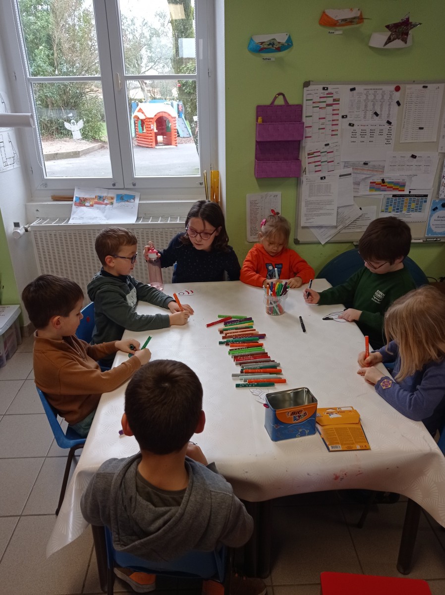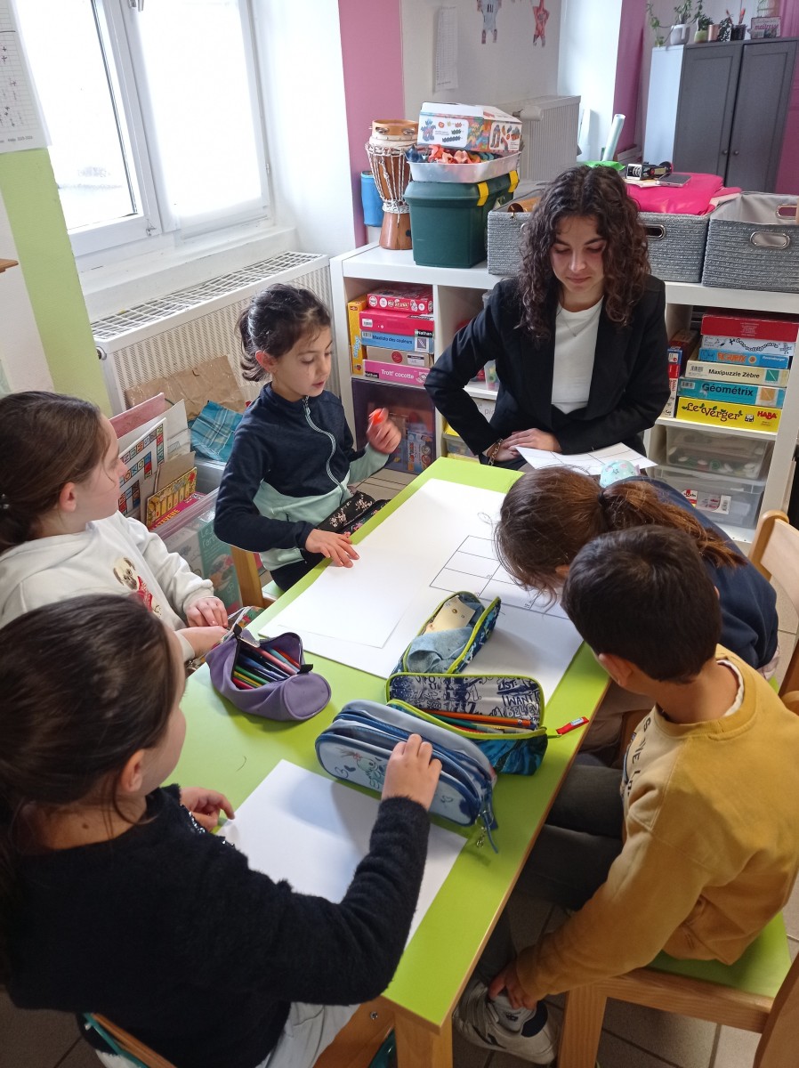 Par petits groupes, les enfants ont imaginé, conçu et fabriqué leurs propres jeux. Ils ont réfléchi aux règles, réalisé les plateaux, préparé les cartes et décoré leurs créations avec beaucoup d’application et de créativité. Les plus grands ont aidé les plus jeunes, favorisant ainsi l’entraide et la coopération.
