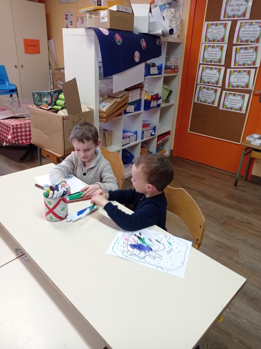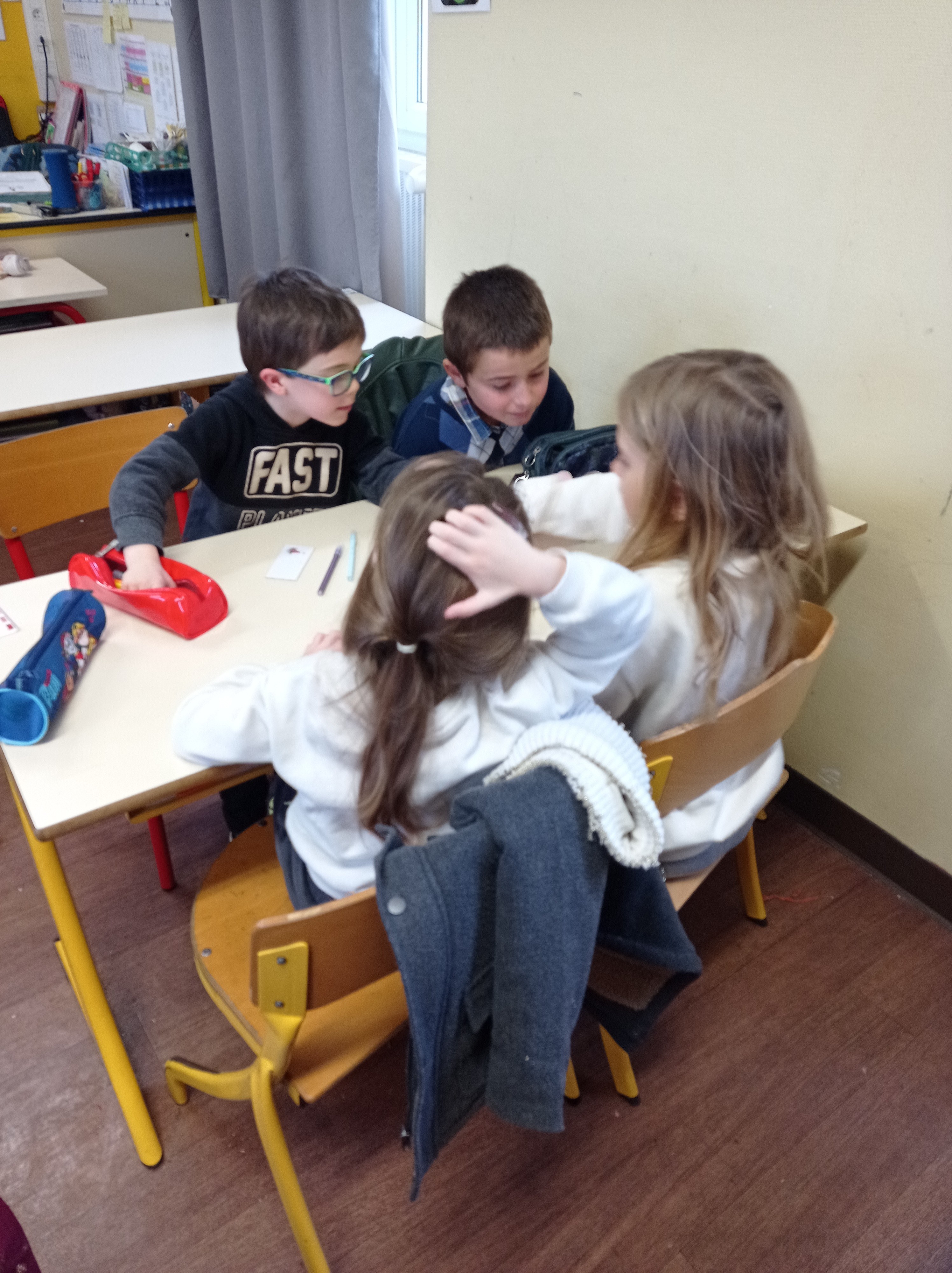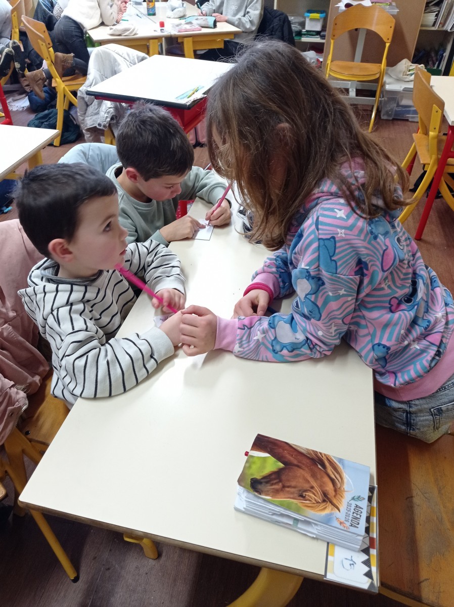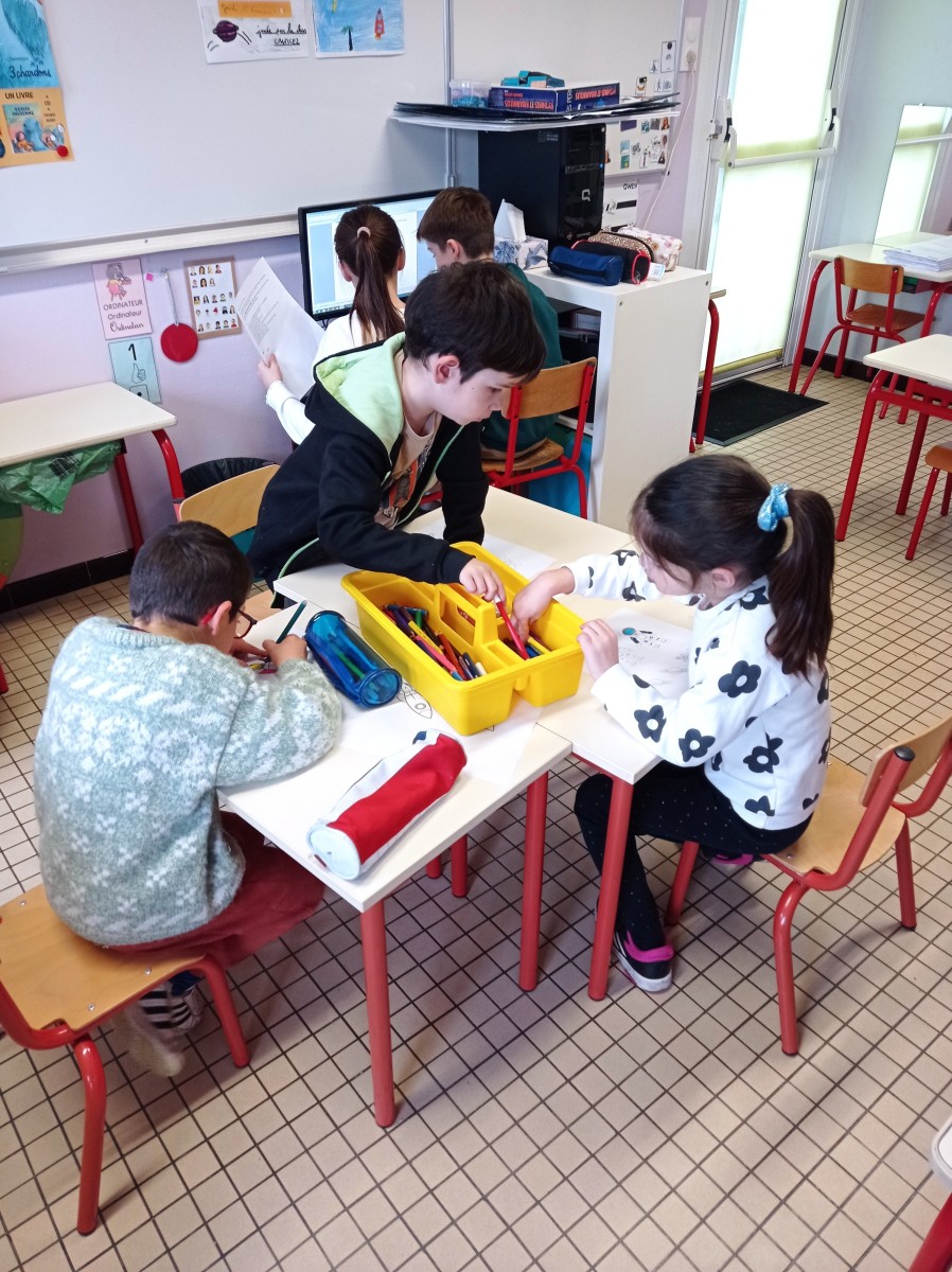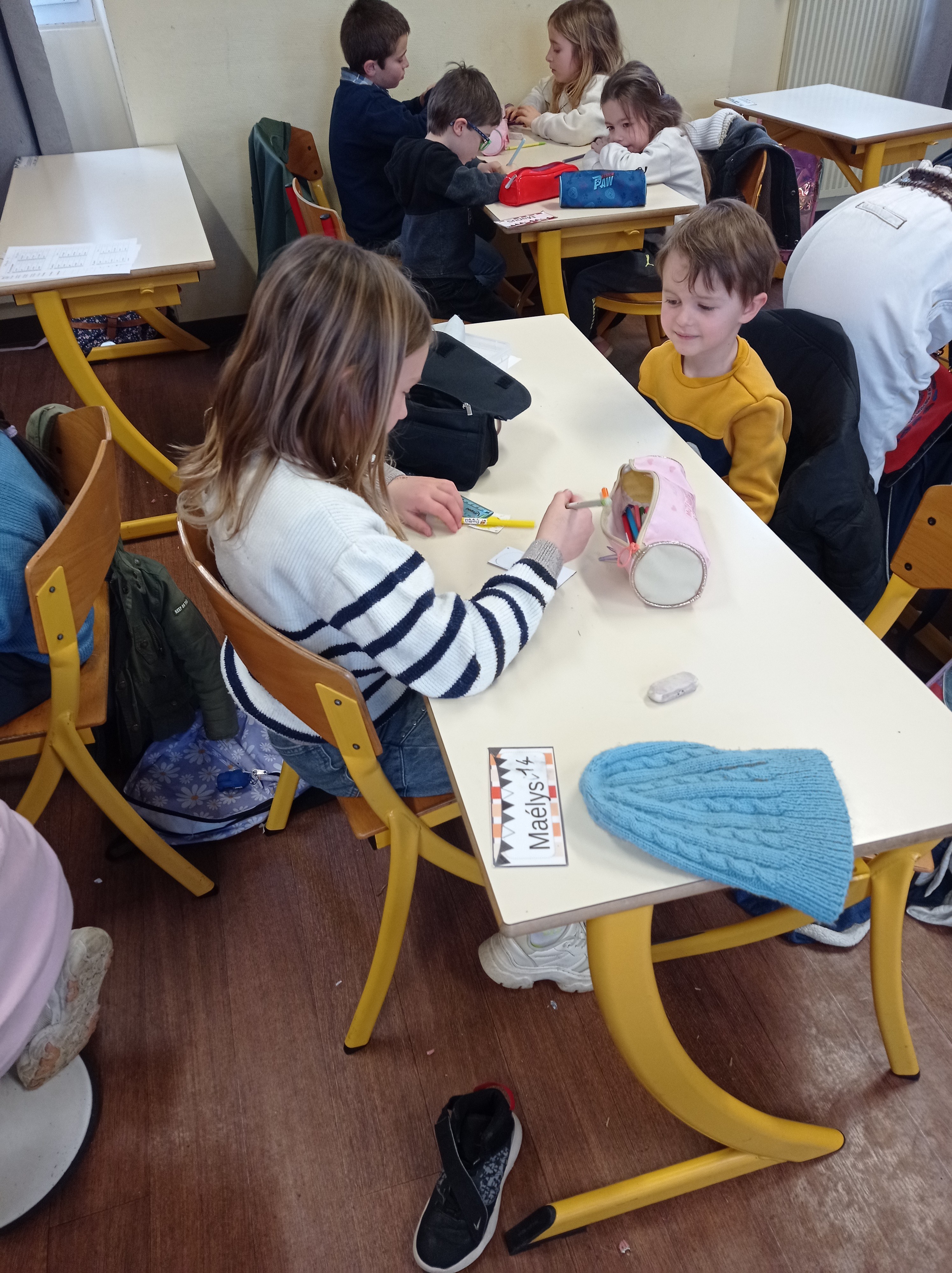 Par petits groupes, les enfants ont imaginé, conçu et fabriqué leurs propres jeux. Ils ont réfléchi aux règles, réalisé les plateaux, préparé les cartes et décoré leurs créations avec beaucoup d’application et de créativité. Les plus grands ont aidé les plus jeunes, favorisant ainsi l’entraide et la coopération.