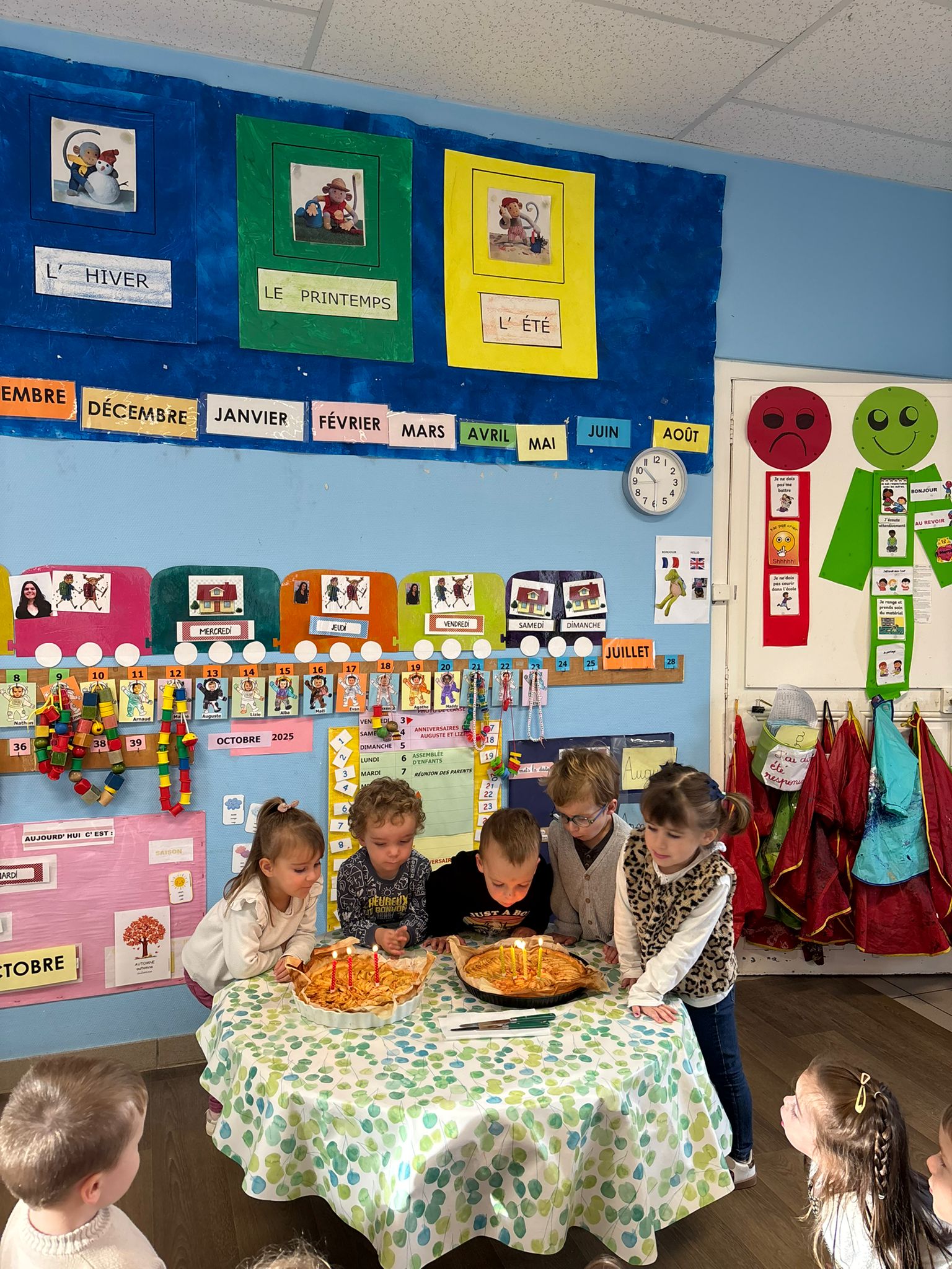 Tous les mois, les élèves de PS/MS fêtent les anniversaires en préparant des recettes. Au mois de septembre, ils ont cuisiné un gâteau yaourt au chocolat et au mois d’octobre, une tarte aux pommes. C’est un vrai régal à chaque…